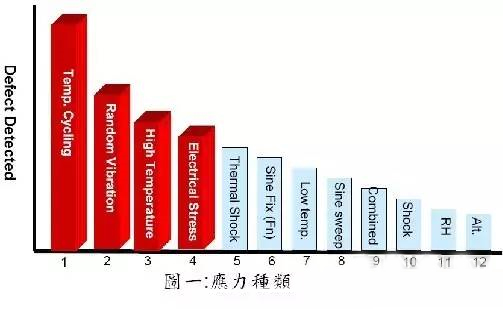 應(yīng)根據(jù)對產(chǎn)品篩選的效果選擇相應(yīng)的環(huán)境應(yīng)力。對電子產(chǎn)品,快速溫變試驗(yàn)箱(ESS)的應(yīng)力主要選擇溫度(高、低溫)循環(huán)試驗(yàn)和振動(dòng)試驗(yàn),這兩種應(yīng)力的組合篩選效果較好,能暴露產(chǎn)品各組裝等級(jí)大部分故障。