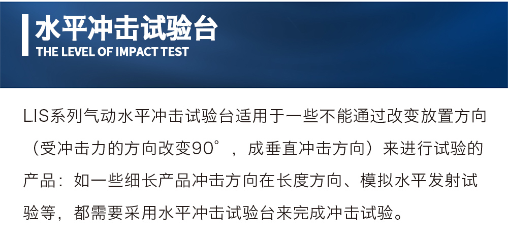 產品型號:LIS-50 品牌:劍 喬 用途:LIS系列氣動水平沖擊試驗臺適用于一些不能通過改變放置方向(受沖擊力的方向改變90°,成垂直沖擊方向)來進行試驗的產品:如一些細長產品沖擊方向在長度方向、模擬水平發射試驗等,都需要采用水平沖擊試驗臺來完成沖擊試驗咨詢熱線:13829135130